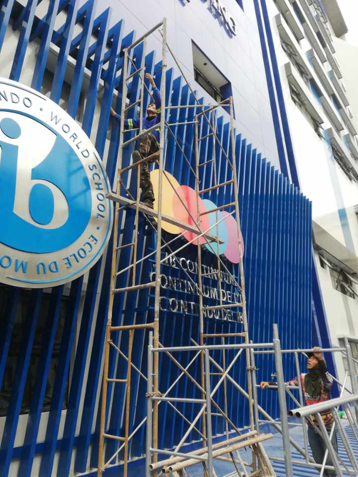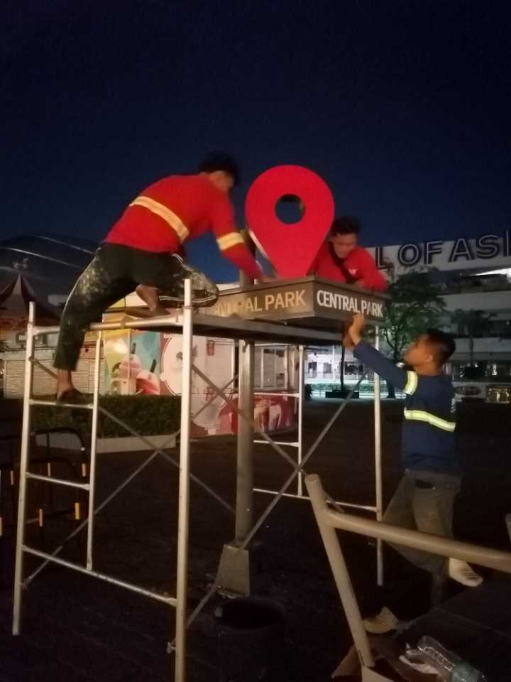 Worker installs ASSUMPTION ANTIPOLO outdoor building signage on tall metal frame, Antipolo, sign maker Philippines by M&G Global Ads.Outdoor pylon signage for Assumption Antipolo in Metro Manila with acrylic letters by sign maker Philippines, by M&G Global Ads.Outdoor signpost signage for Assumption Antipolo, directional wayfinding, Metro Manila, sign maker Philippines by M&G Global Ads.Workers install or repair an outdoor acrylic Central Park sign atop scaffolding at night, Metro Manila, sign maker Philippines by M&G Global Ads.Outdoor illuminated pylon signage SUNSET PARK with red map pin, at night in Metro Manila by sign maker Philippines, by M&G Global Ads.Central Park outdoor acrylic signage with large red location pin, Mall of Asia, Metro Manila—sign maker Philippines by M&G Global Ads.Illuminated acrylic LED location pin signage with CENTRAL PARK text, indoor sign maker Philippines, Metro Manila by M&G Global Ads.Outdoor wayfinding signpost with directional arrows, aluminum signage, Metro Manila, sign maker Philippines by M&G Global Ads.Worker adjusts colorful outdoor LED wayfinding signage at night, Metro Manila. Sign maker Philippines by M&G Global Ads.Outdoor LED acrylic wayfinding signpost for Quick Bites, Smart Park, Kid’s City—Metro Manila sign maker Philippines by M&G Global Ads.Two workers install acrylic building signage panels with an international school logo in Metro Manila, sign maker Philippines by M&G Global Ads.PAO SHIH TIEN HALL building signage, Metro Manila, school sign maker Philippines by M&G Global Ads.Carlos Chan Building outdoor building signage with Chinese chars, Metro Manila, sign maker Philippines by M&G Global Ads.LED acrylic building signage CKS COLLEGE Metro Manila sign maker Philippines, wood wall background by M&G Global Ads.