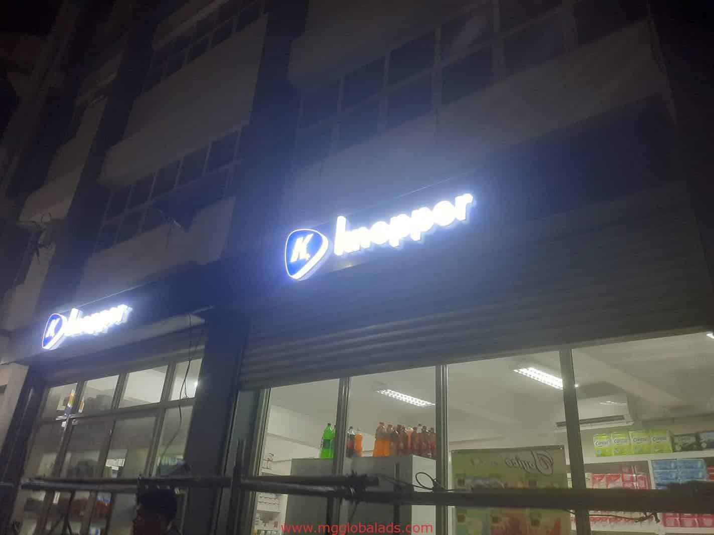 Aside from towering outdoor projects, our crew also installed modern acrylic build-up and LED signage for offices and retail locations. These signs enhanced branding visibility while maintaining an elegant look indoors.