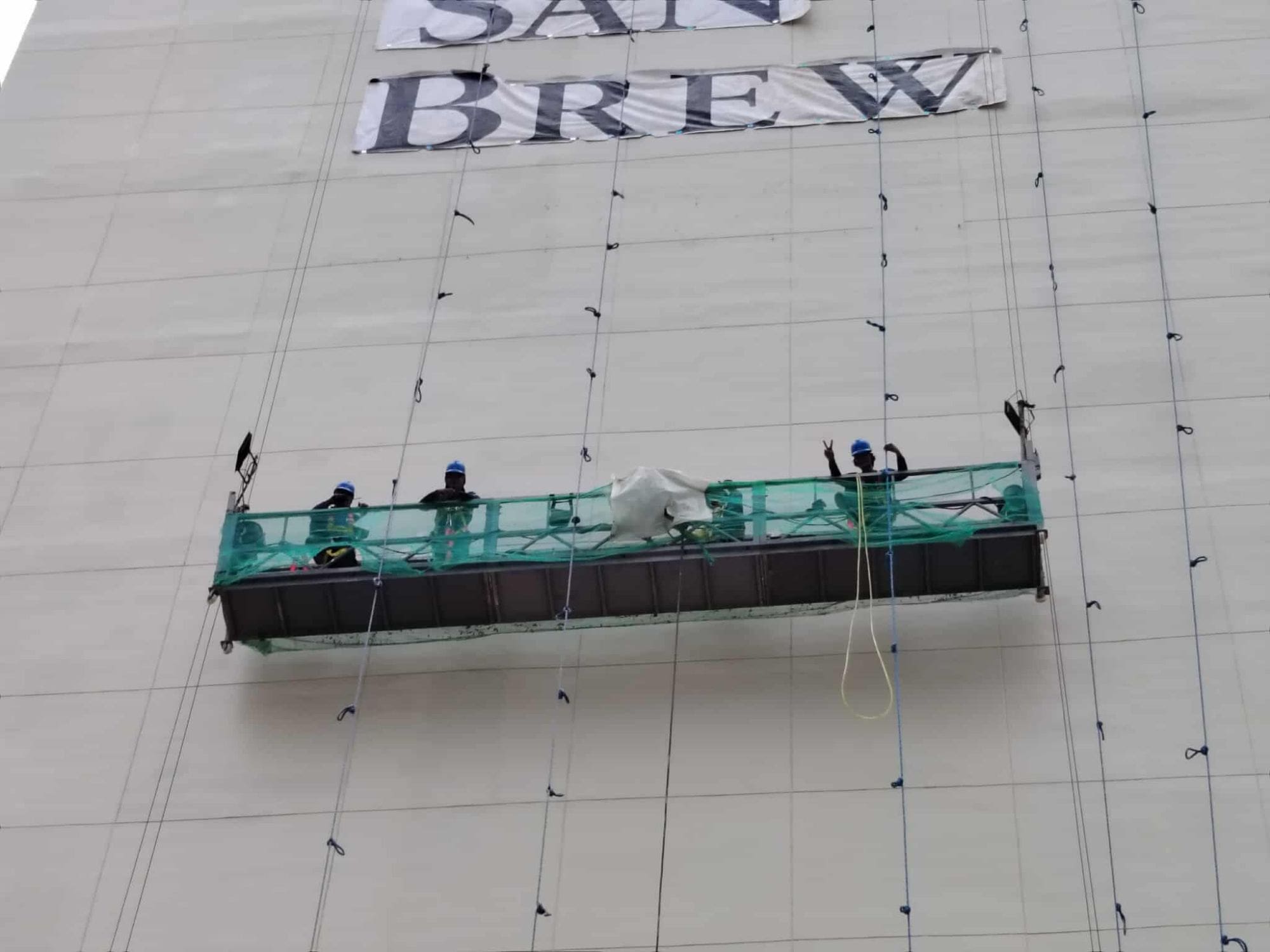 This project required high-altitude installation using suspended gondolas and specialized rigging systems. Our technical crew, equipped with full-body harnesses and safety lines, worked systematically to mount each letter while maintaining visual consistency across a wide elevation.