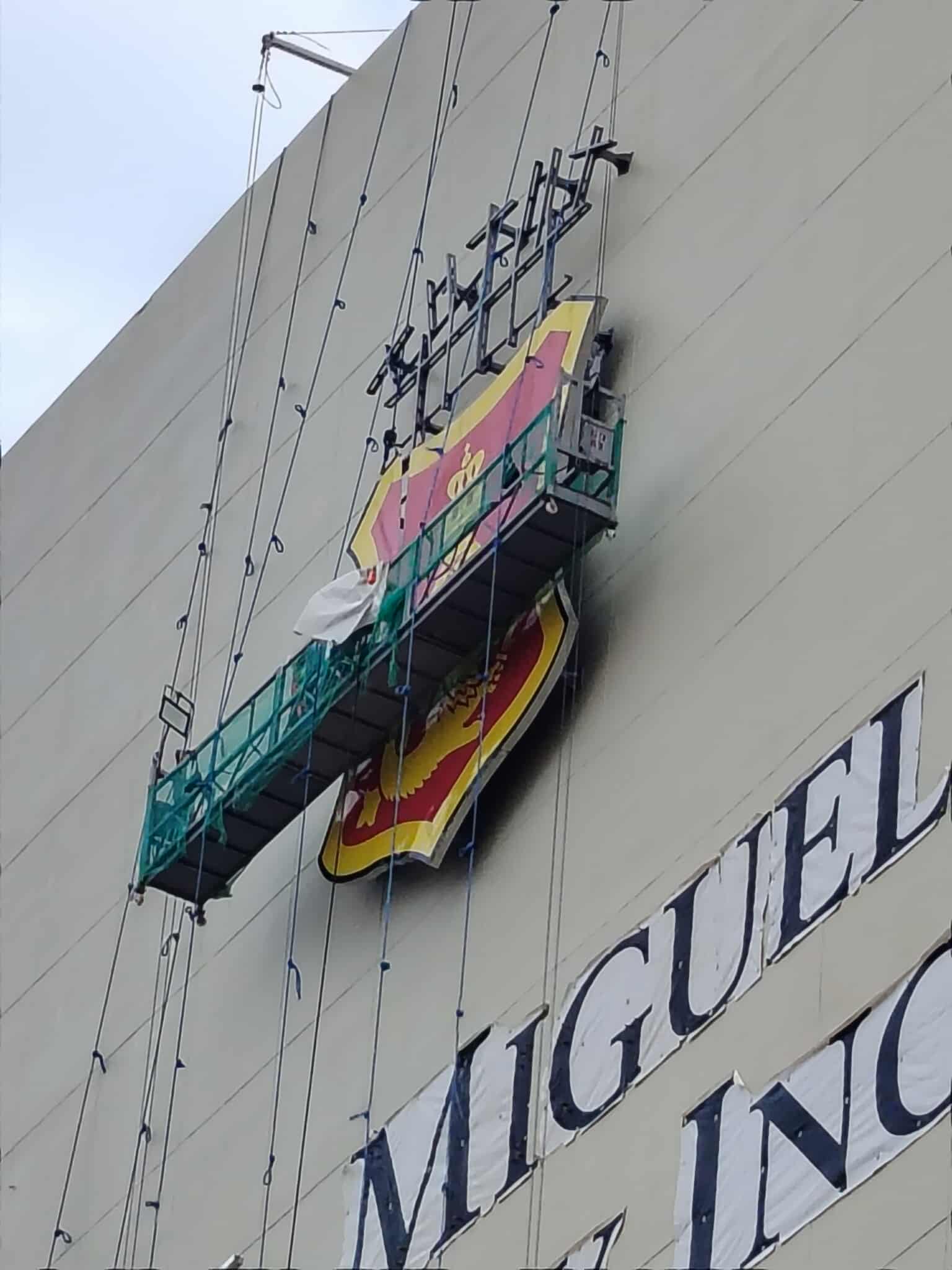 The massive façade signage proudly displays the San Miguel Brewery crest and built-up stainless steel letters, mounted high on the brewery’s main building. Each letter — crafted from high-grade stainless steel with hairline finish and painted side panels — was designed to reflect sunlight during the day and project a commanding presence even from afar.