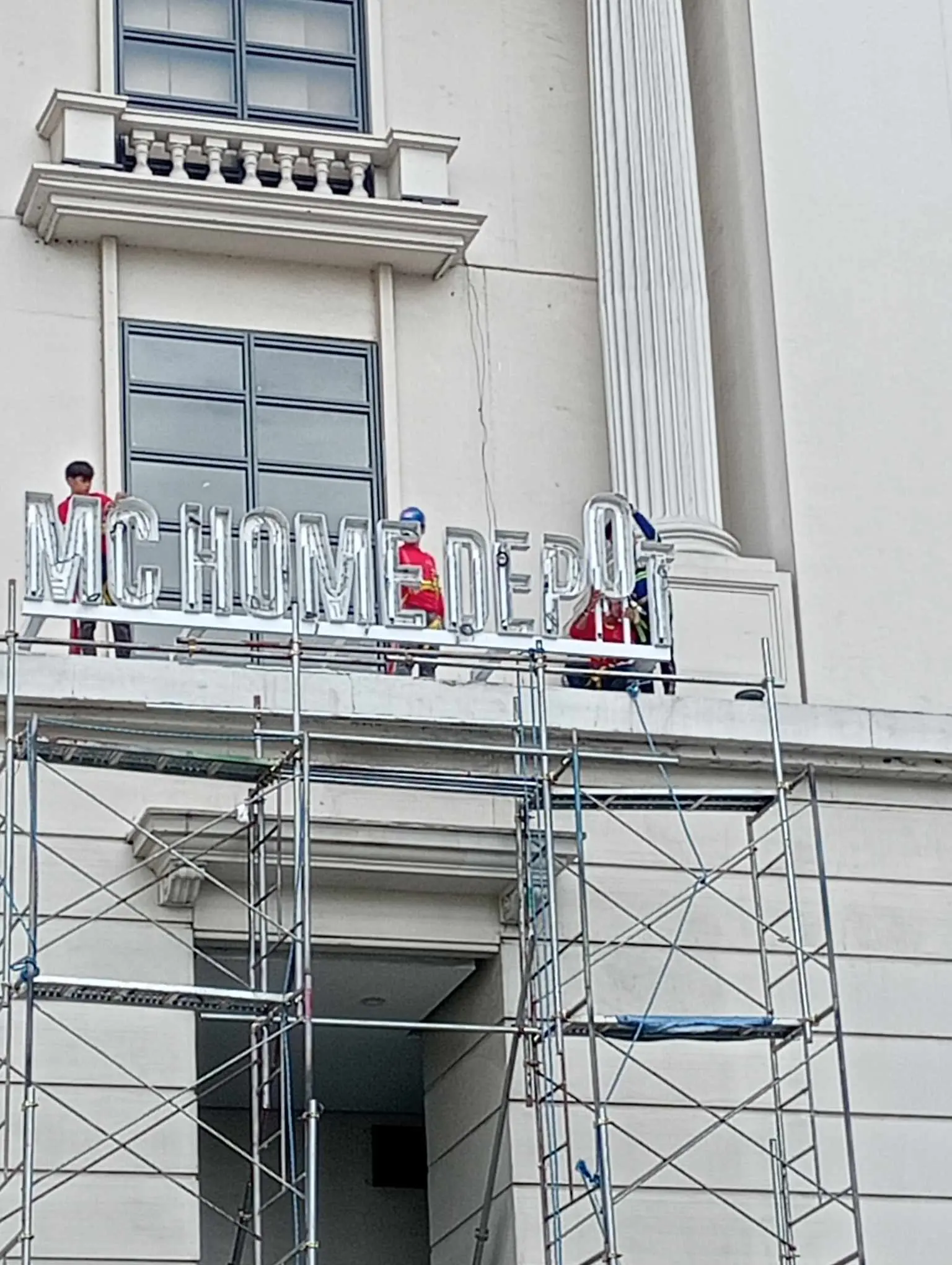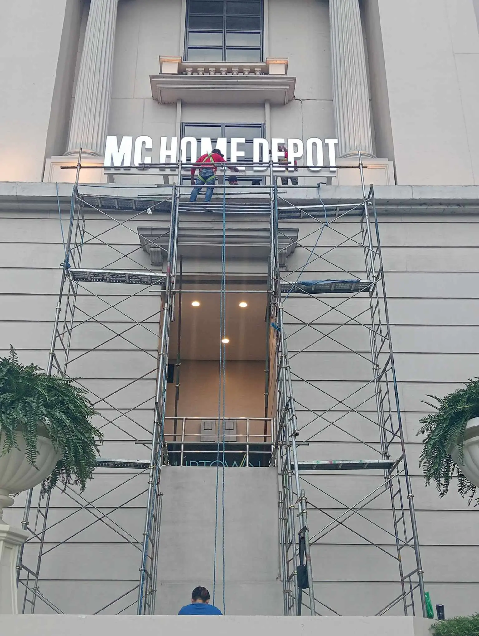 Main SquareOutdoor directional building signage for Main Square Filinvest in Makati, green sign with exit arrow by M&G Global Ads.Filinvest pylon signage maintenance at mall entrance in Ortigas by M&G Global Ads, with workers on scaffold and cars in background.Outdoor billboard signage installation at a white building site in Quezon City under construction, by M&G Global Ads.TotemLED billboard installation for commercial client in Makati, workers on scaffolding at night, by M&G Global Ads.LED indoor wall signage for PEDIATRICA UNILAB in Ortigas, glowing blue and white by M&G Global Ads.Illuminated PEDIATRICA clinic signage for UNI in Makati, glass entrance, reception desk, modern seating by M&G Global Ads.Creative indoor smart city signage for offices in Makati: cityscape, tech icons, vivid circles on white wall by M&G Global Ads.Outdoor archway signage for Philippine Ports Authority at Port of Lamao in Makati, construction visible, cloudy sky, by M&G Global Ads.Vertical building signage for 6 SAMPALOC, bold white letters, wires visible, cloudy sky in Ortigas by M&G Global Ads.Building signage for Philippine Ports Authority at Port of Lamao in Pasig, blue and white, under construction by M&G Global Ads.Acrylic building signage for CurioCity, 6 SAMPALOC design in Mandaluyong. Power lines and truck, overcast sky. by M&G Global Ads.Metallic building signage installation for MC HOME DEPOT in Quezon City by M&G Global Ads, workers on scaffolding visible.MC Home Depot stainless steel signage installation on building exterior in Pasig, with workers and plants, by M&G Global Ads.Outdoor building signage installation on a classical white building in Makati with workers on scaffolding by M&G Global Ads.MC HOME DEPOT outdoor acrylic signage installation on neoclassical building facade in Ortigas by M&G Global Ads.MC HOME DEPOT acrylic building signage installation in Mandaluyong, workers on scaffolding, sign missing last letter by M&G Global Ads.LED building signage installation on top of a tall gray building in Ortigas under construction by M&G Global Ads.MAAGAP Insurance, Inc. acrylic indoor signage in reception area, Makati office installation by M&G Global Ads.