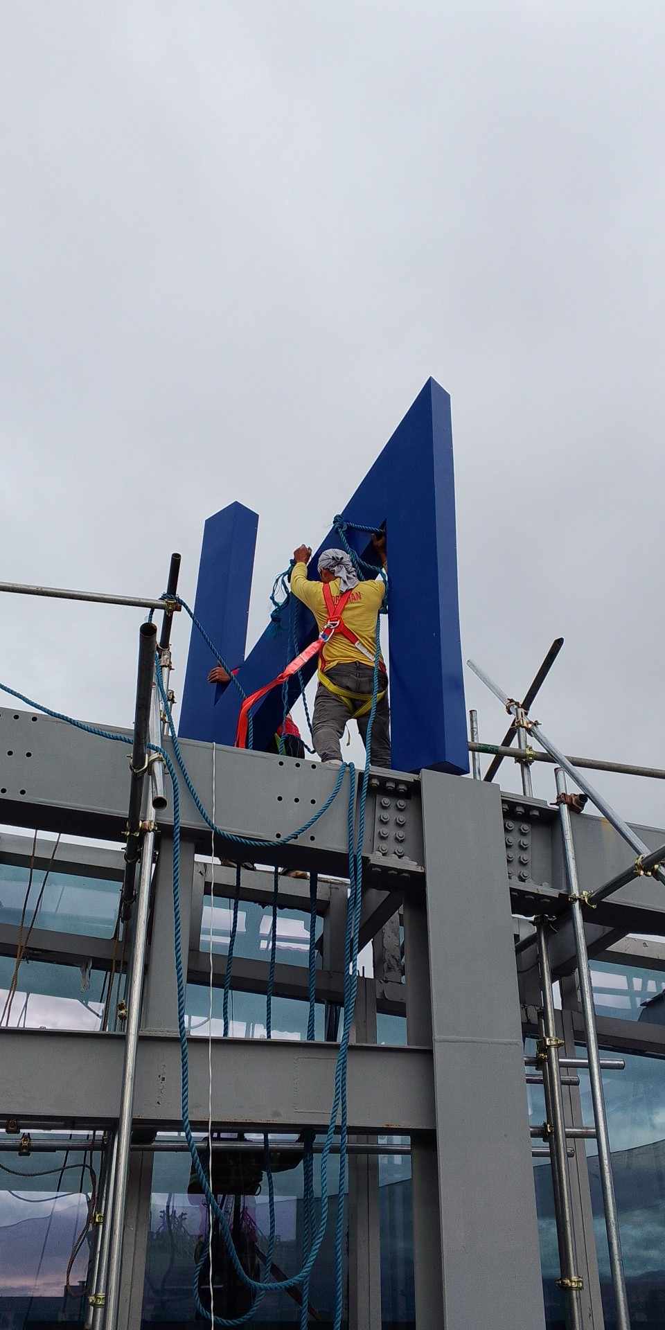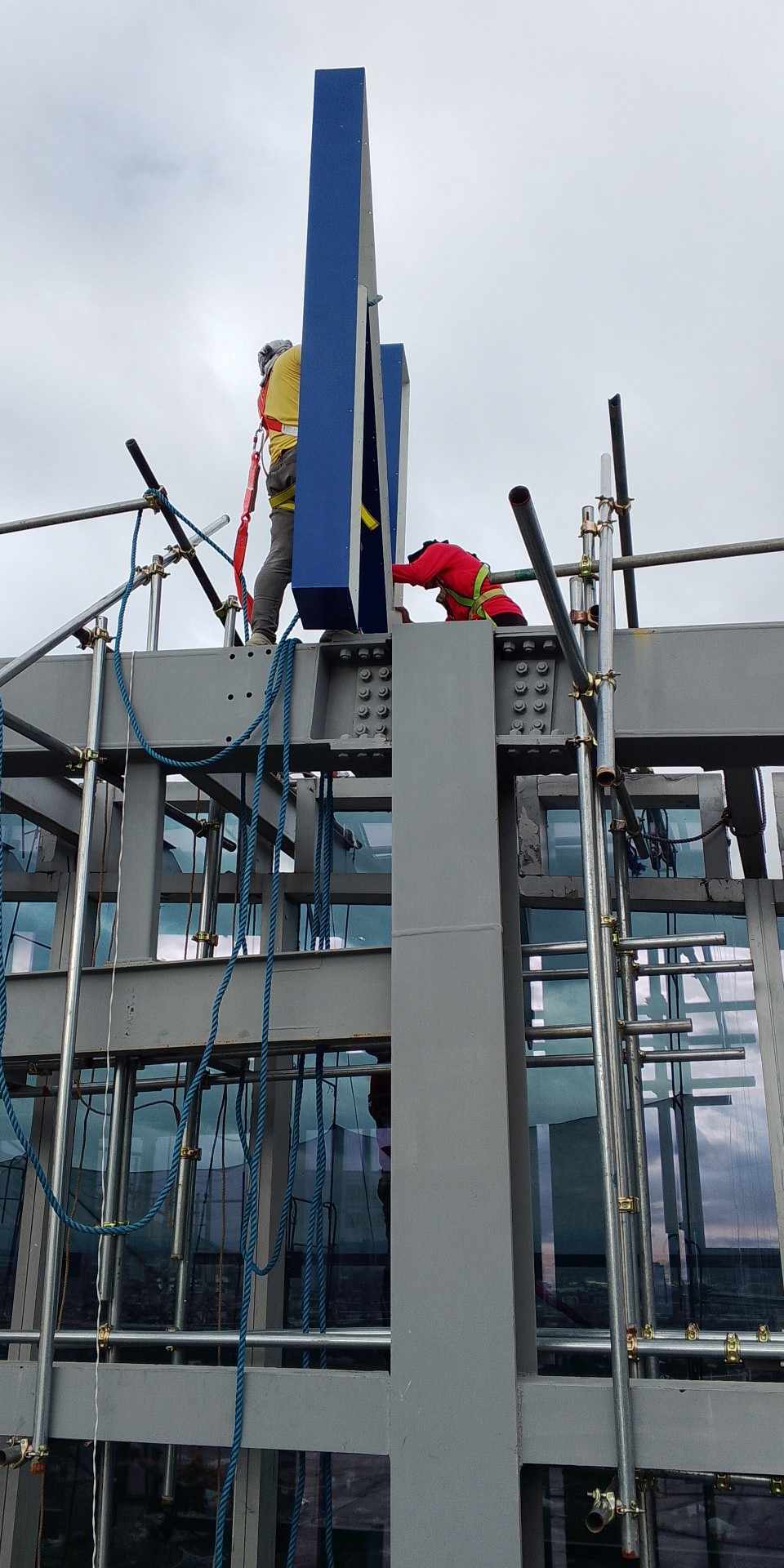 Our January projects included large building-top signage crafted from acrylic and stainless steel channel letters with LED backlighting. Installed using rope-access techniques, these signs dominate the skyline while maintaining structural integrity and durability, solidifying our corporate signage expertise.